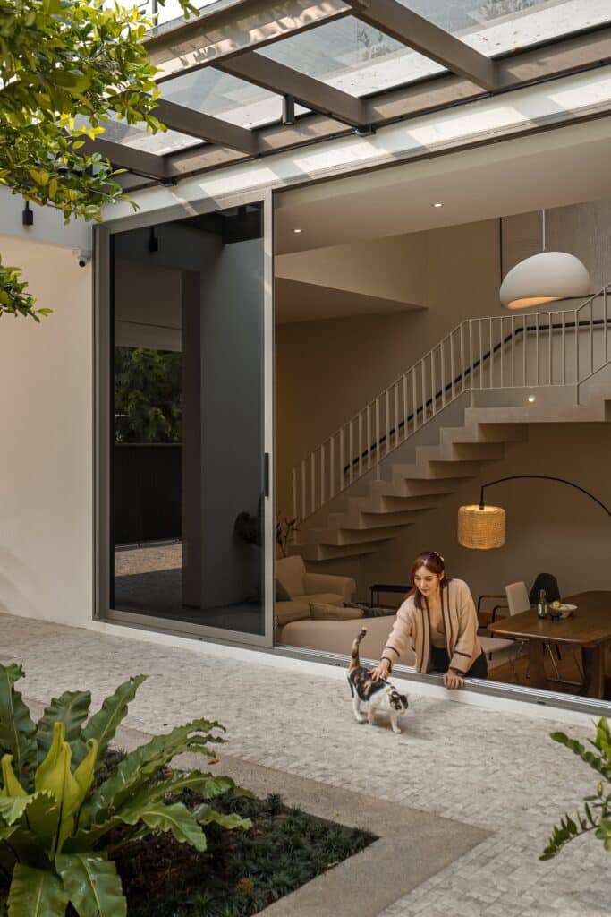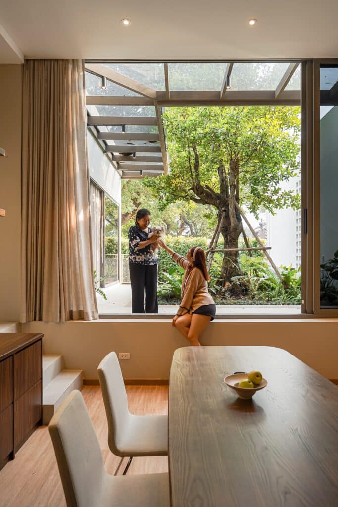 โจทย์การออกแบบบ้านโดยต้องการแยกพื้นที่ของลูกสาวกับแฟน และ พื้นที่ของคุณแม่ เพื่อความเป็นส่วนตัวแต่ยังคงอยากให้มีความเชื่อมต่อถึงกัน จึงออกแบบพื้นที่ส่วนกลางที่สามารถใช้เวลาและทำกิจกรรมร่วมกันได้ แสดงถึงความห่วงใยของคุณแม่ที่มีต่อลูกสาว และ ความใส่ใจที่ลูกสาวมีต่อคุณแม่