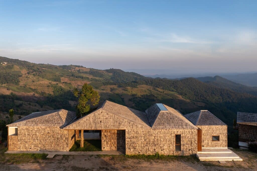 แนวคิดหลักถูกถ่ายทอดผ่านรูปฟอร์มอาคารและการวางตัวของมวลอาคาร (Building Form & Massing) โดยสถาปนิกตีความลักษณะภูมิประเทศของพื้นที่ภูเขาออกมาเป็นองค์ประกอบทางสถาปัตยกรรม รูปทรงอาคารถูกออกแบบให้เปรียบเสมือนการเรียงตัวของแนวภูเขา ขณะที่เส้นสายความลาดเอียงของหลังคาสะท้อนภาพของเนินเขาและสภาพภูมิประเทศตามธรรมชาติ ส่งผลให้อาคารสามารถกลมกลืนไปกับสภาพแวดล้อมได้อย่างแนบเนียน และลดความรู้สึกของการแทรกแซงพื้นที่เดิม