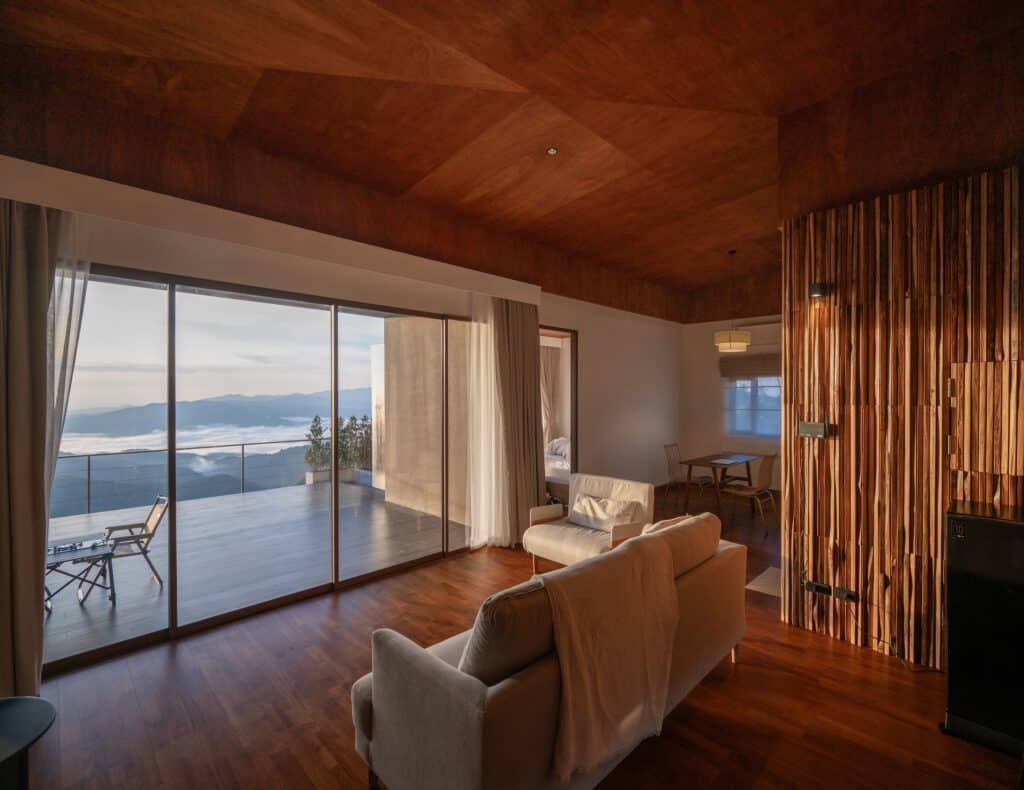 Situated within a mountainous forest context, trees are interpreted as the primary “inhabitants” of the site. Timber is therefore selected as the project’s main material, not merely for its aesthetic qualities, but as a conscious response to the site itself. Material selection is approached with an emphasis on resource efficiency and environmental responsibility rather than visual expression alone.